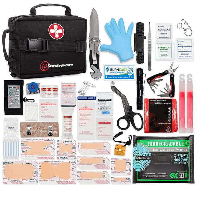 This is a very good quality, well thought out, well organized, compact First Aid Kit. The bag is sturdy, the contents are good quality, and the mini-zip-bags for personal meds are a nice bonus.