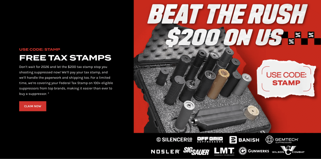 Save $200 with code STAMP! Plus, you can get suppressors delivered to your front door. No need for a visit to your local FFL.